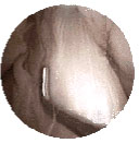 This arthroscopic view shows a healthy ACL that is firmly attached to the femur and